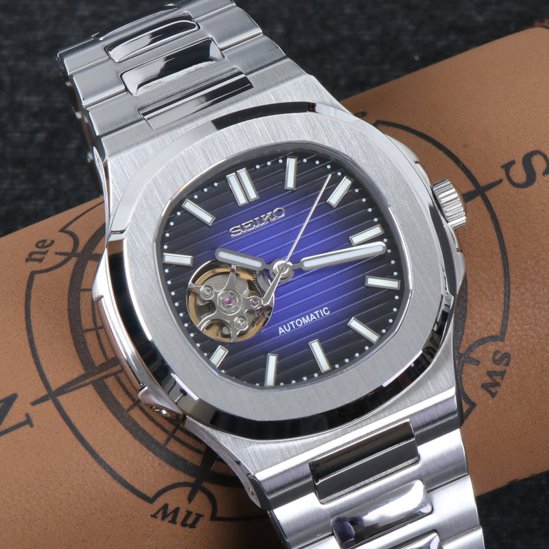 Custom Vintage Blue Open-Heart Automatic NH38 Mod Watch