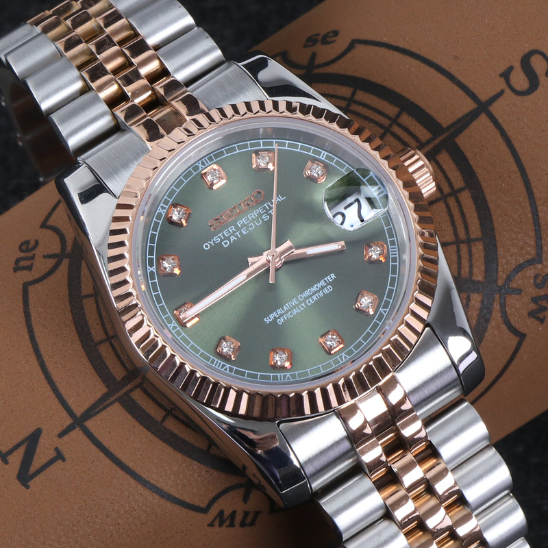 Custom Vintage Green Rosegold Steel Automatic Mod Watch