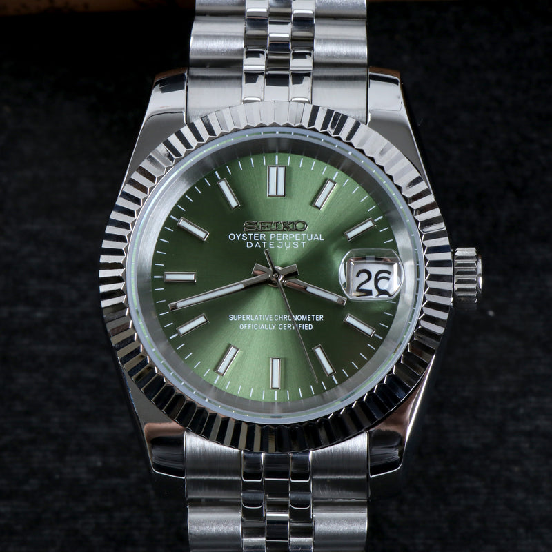 Custom Vintage Black & Green Roman Dial Automatic Mod Watch